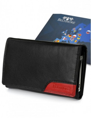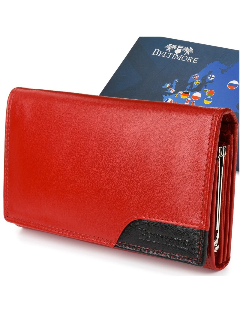 • Damski skórzany portfel duży poziomy z biglem RFiD czerwony BELTIMORE 038 - zdjęcie 1