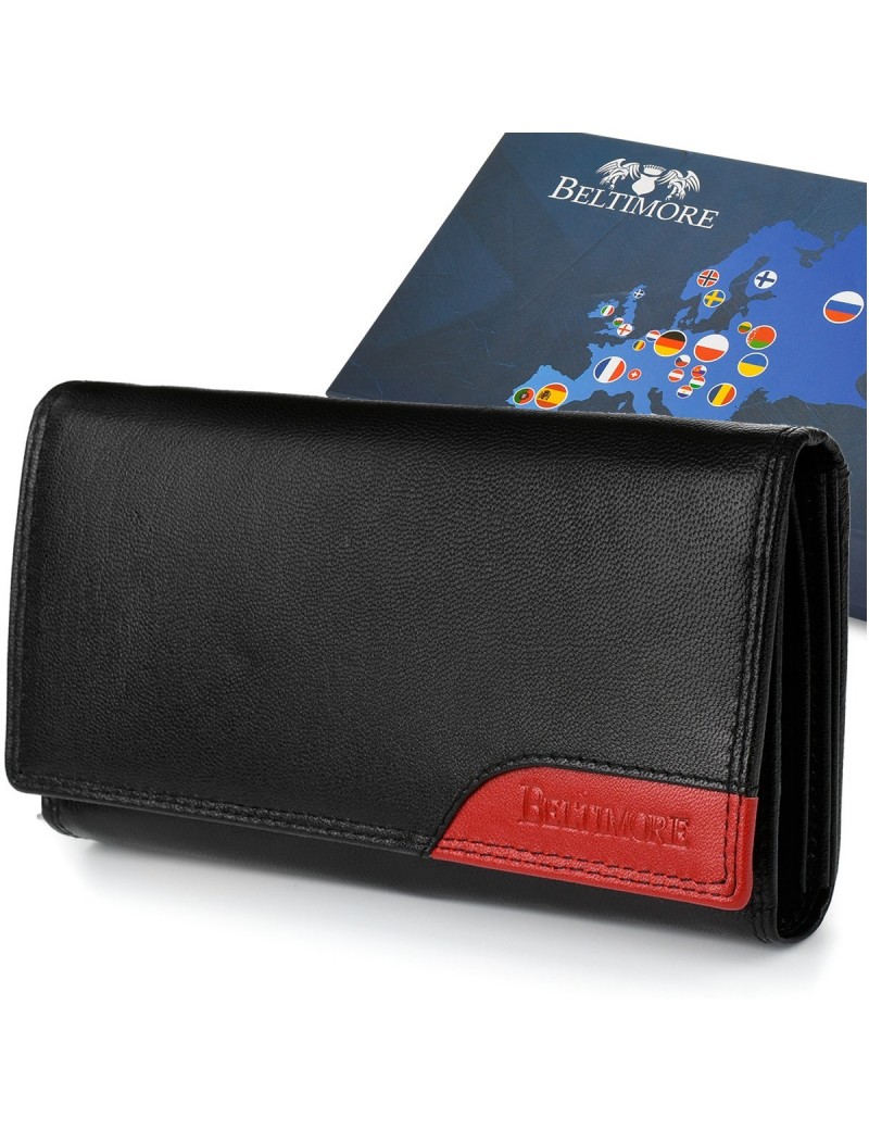 Damski skórzany portfel duży poziomy na suwak RFiD czarny BELTIMORE 042