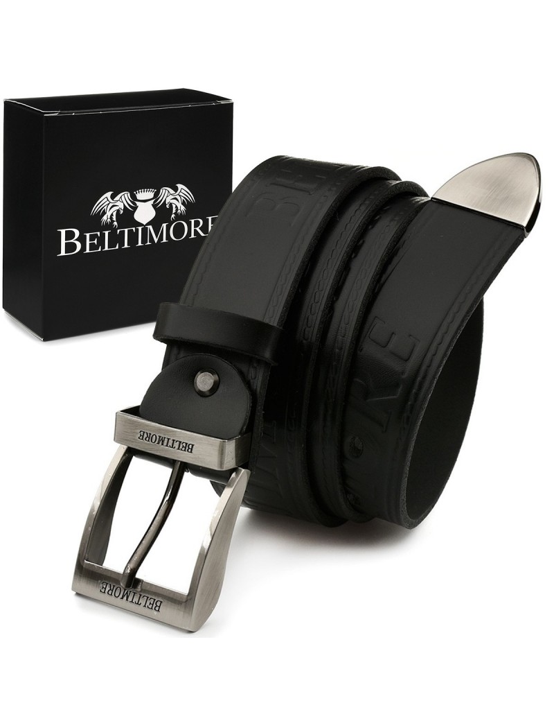 Beltimore męski skórzany pasek szeroki jeans czarny 524