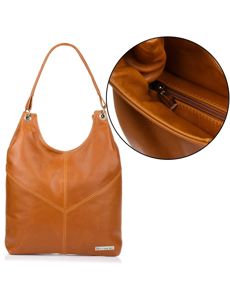 Torebka skórzana damska duża worek pojemny kamel Beltimore 970