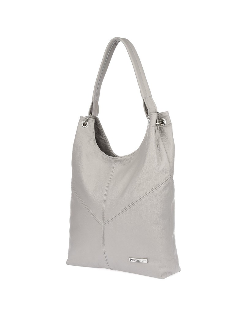 Torebka damska skórzana duży worek ze skóry siwa A4 Beltimore 970