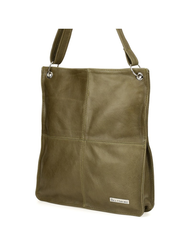 Oliwkowa damska skórzana na ramię torebka Beltimore skóra 972