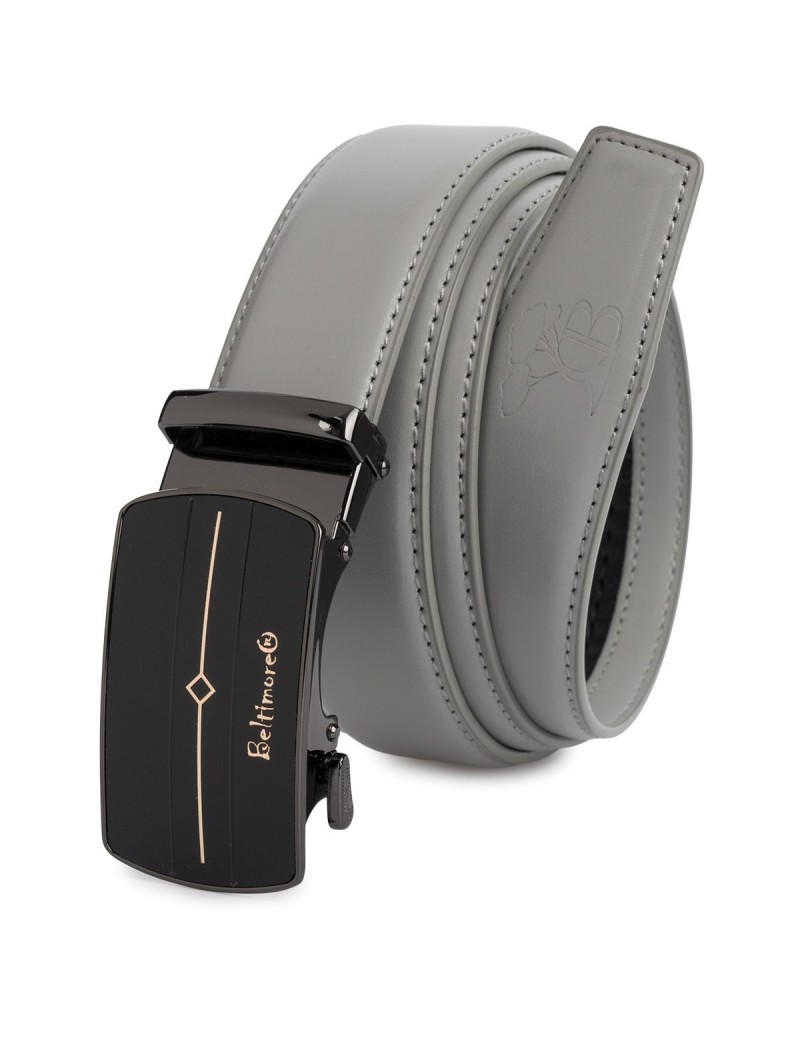 Pasek męski skórzany klamra automatyczna jasno szary Beltimore A43