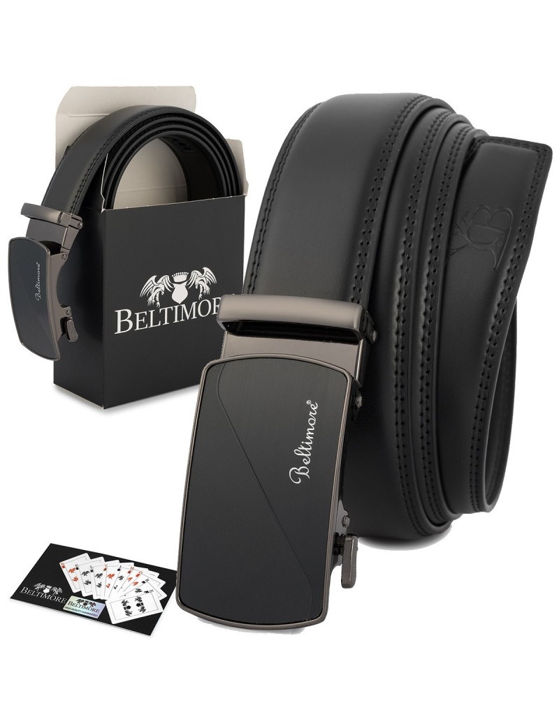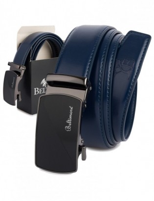 Pasek męski skórzany klamra automatyczna czarny Beltimore A47