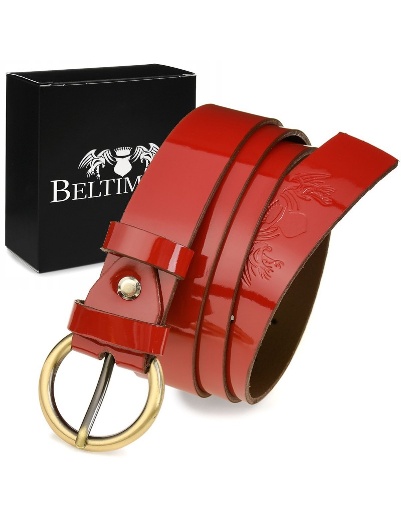 • Beltimore skórzany damski pasek do spodni 3 cm czerwony A67 - zdjęcie 1
