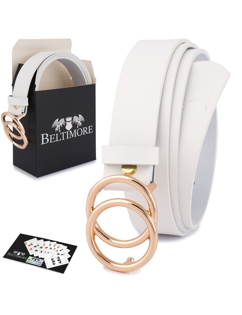 Skórzany pasek damski do spodni sukienki koła klasyczny biały Beltimore B03