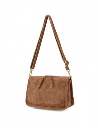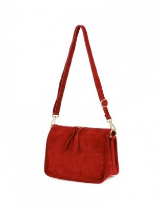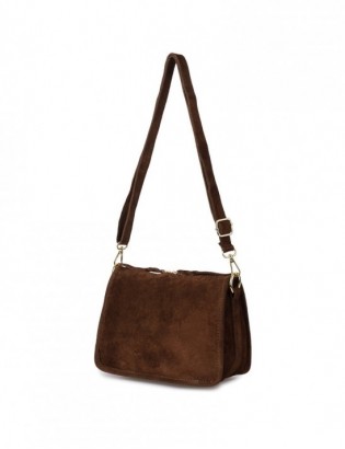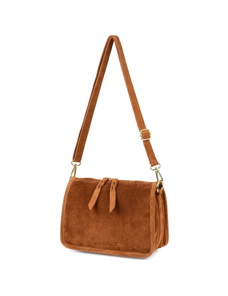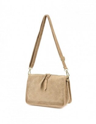 Camelowa skórzana listonoszka damska włoska zamszowa kuferek Beltimore B64