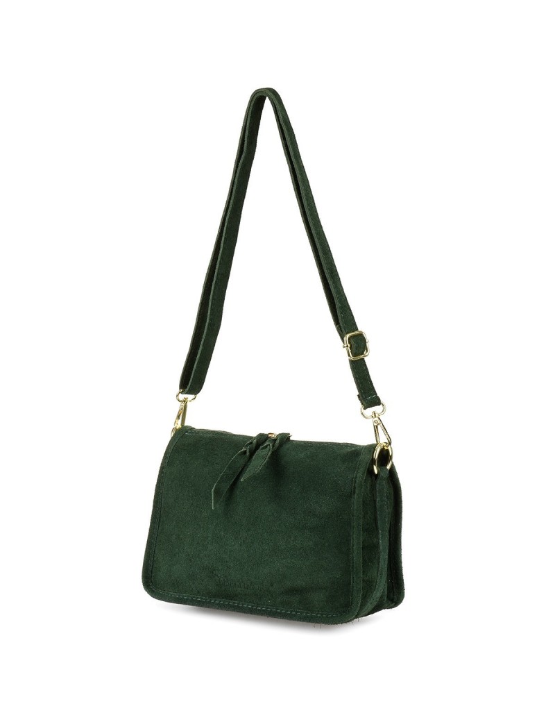 Zielona skórzana listonoszka damska włoska zamszowa kuferek Beltimore B64