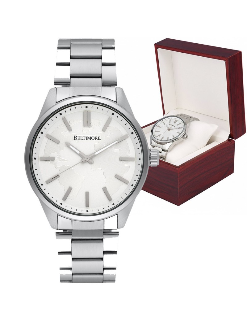 Zegarek męski bransoleta duży solidny srebrny glob premium Beltimore BT01