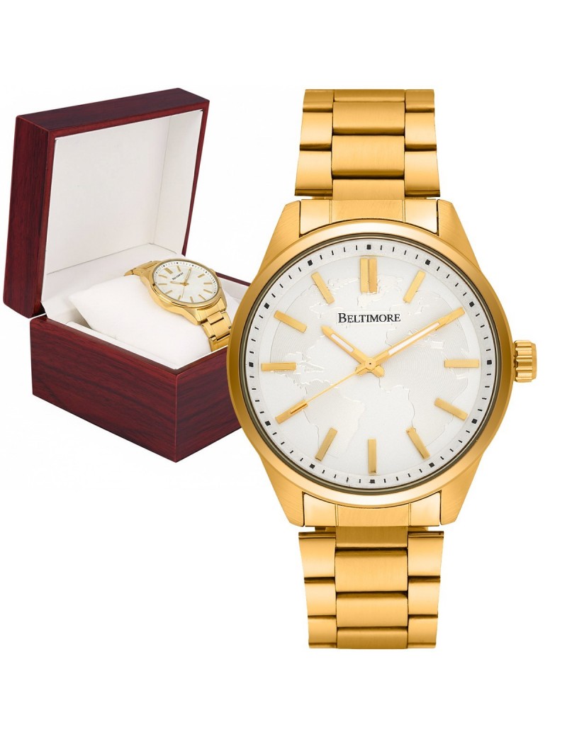 Zegarek męski bransoleta duży solidny złoty glob premium Beltimore BT01