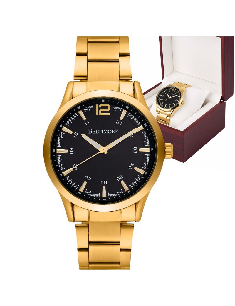 Zegarek męski bransoleta duży solidny złoty klasyczny premium Beltimore BT02