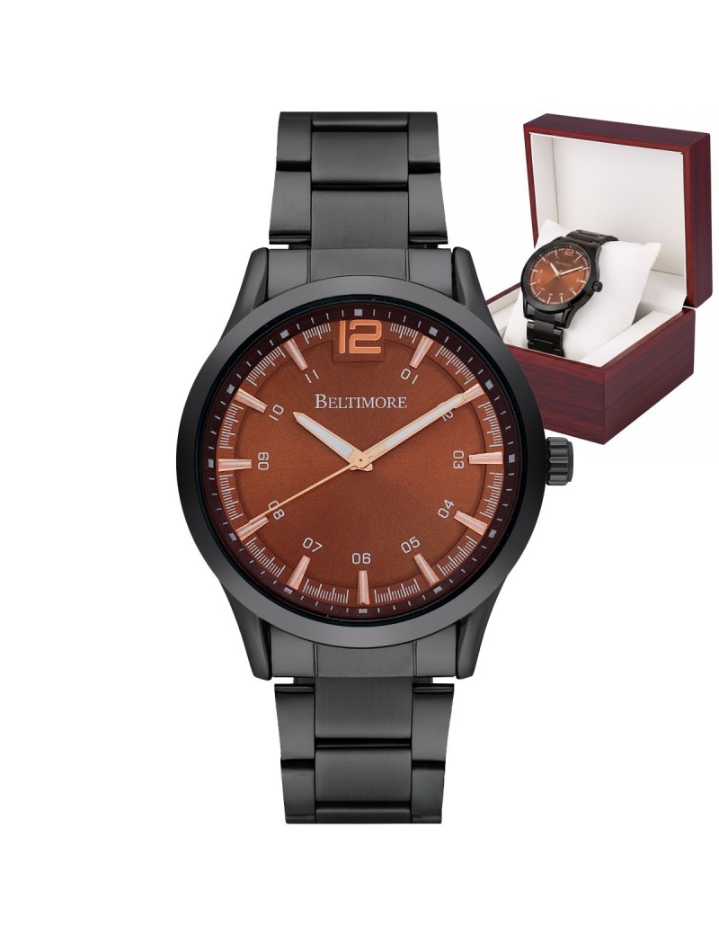 Zegarek męski bransoleta duży solidny czarny klasyczny premium Beltimore BT02
