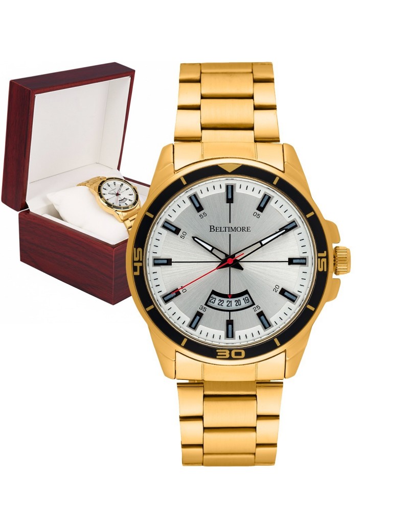 Zegarek męski bransoleta duży solidny z datownikiem złoty premium Beltimore BT03