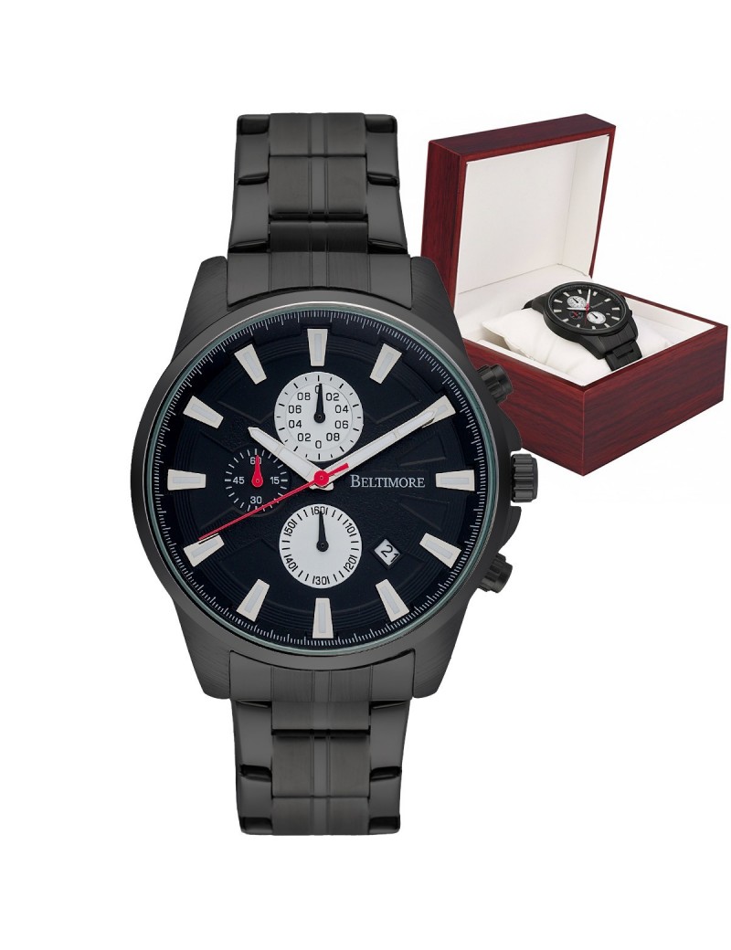 Zegarek męski bransoleta duży solidny z datownikiem czarny premium Beltimore BT04