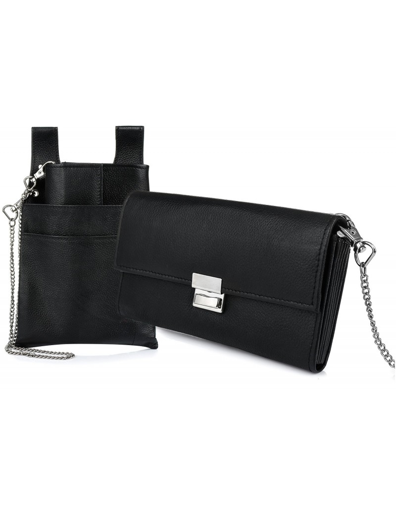 Czarny portfel i etui na portfel i łańcuch zestaw skórzany dla kelnera D01