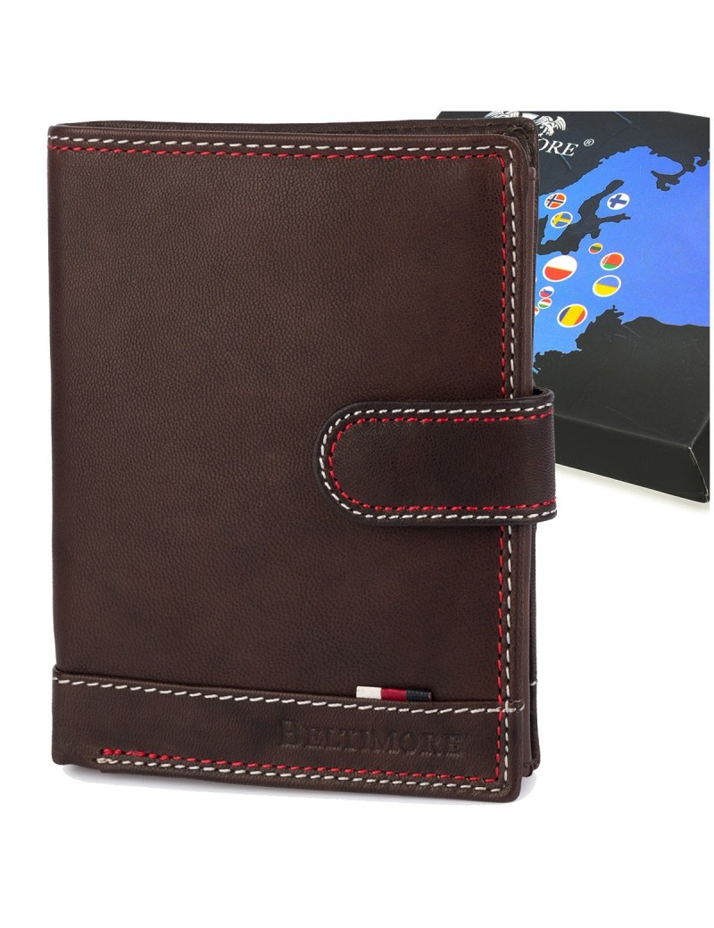Portfel skórzany męski klasyczny pionowy z flagą brązowy RFiD Beltimore D29