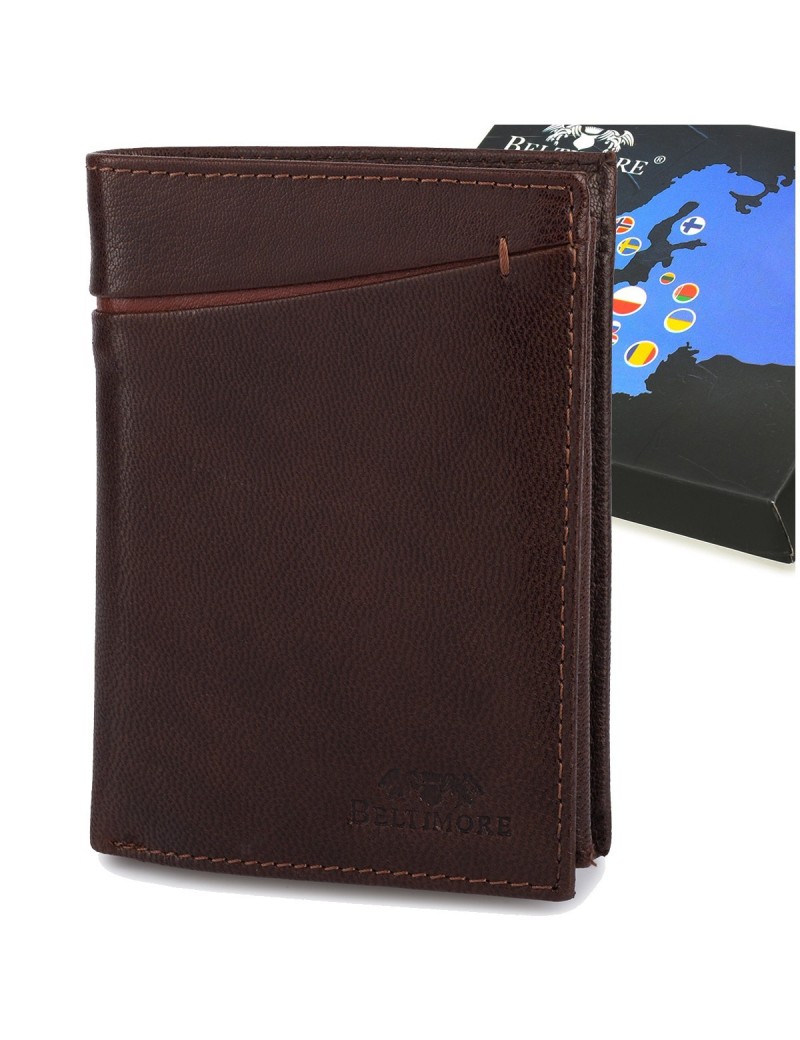 Portfel skórzany męski pionowy klasyczny brązowy RFiD Beltimore D32