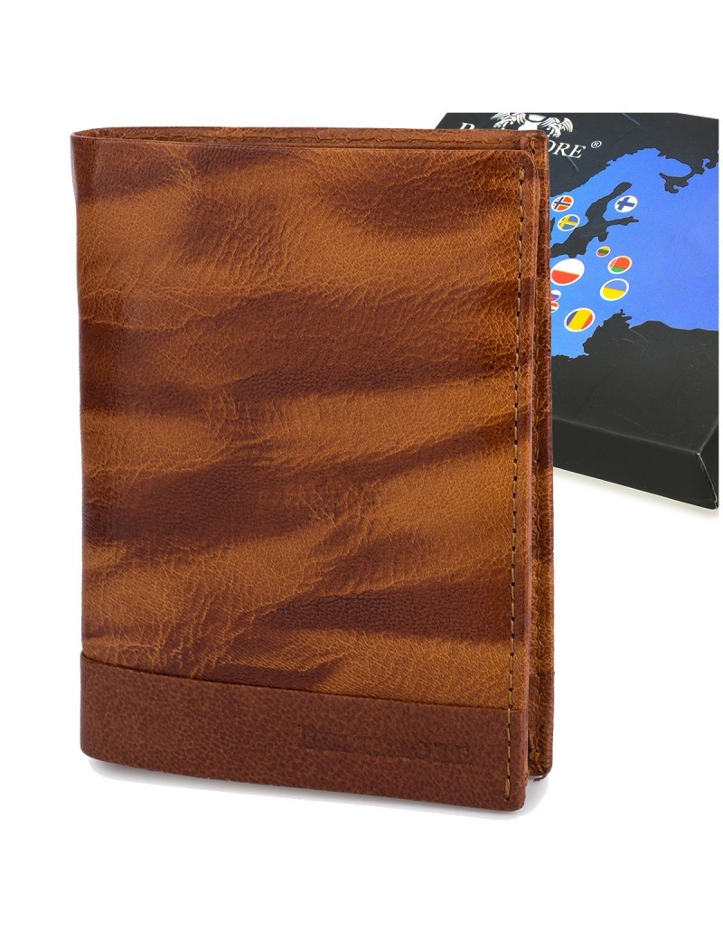 Portfel skórzany męski pionowy klasyczny brązowy RFiD Beltimore D36