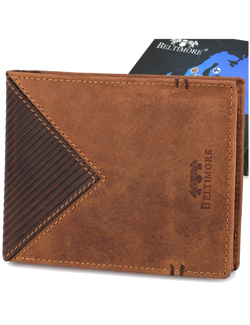 Portfel skórzany męski poziomy klasyczny brązowy RFiD Beltimore D37