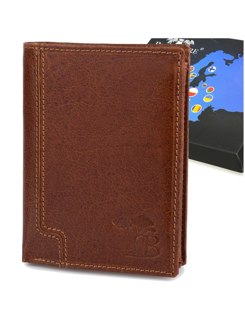 Portfel skórzany męski pionowy klasyczny brązowy RFiD Beltimore D42