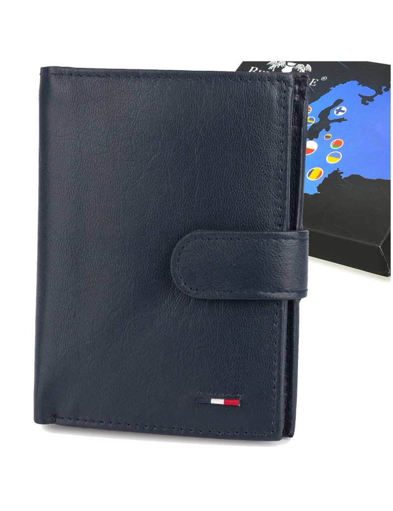 Męski portfel skórzany klasyczny granatowy pionowy Beltimore D49