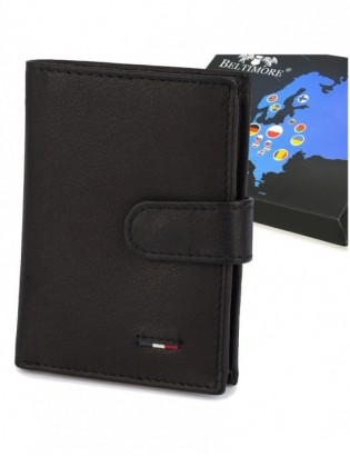 Portfel skórzany męski mały pionowy z flagą granatowy RFiD Beltimore D53