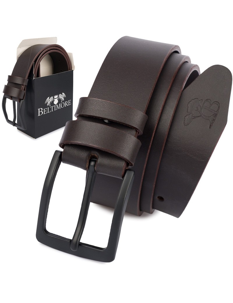 Skórzany pasek męski skóra naturalna licowa brązowy premium Beltimore E18
