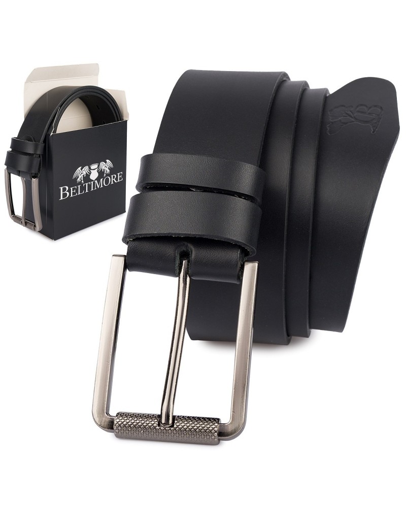 Skórzany pasek męski skóra naturalna licowa czarny premium Beltimore E19