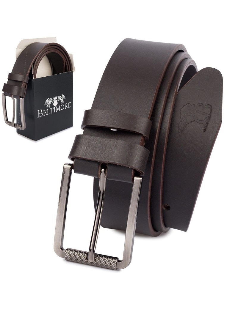 Skórzany pasek męski skóra naturalna licowa brązowy premium Beltimore E20