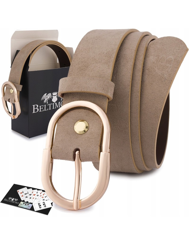 Skórzany pasek damski do spodni sukienki cielisty skóra nat. zamszowa 3 cm Beltimore E53