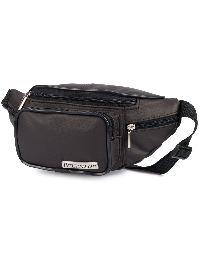 Saszetka nerka skórzana biodrówka ciemny brąz Beltimore F42