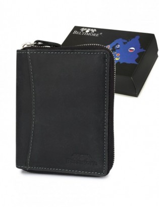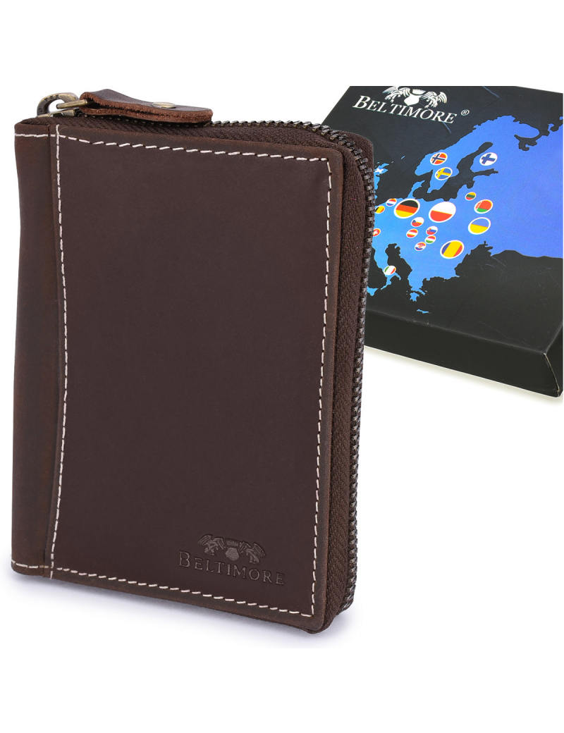 Ciemnobrązowy duży portfel skórzany męski skóra nubuk Beltimore vintage G71
