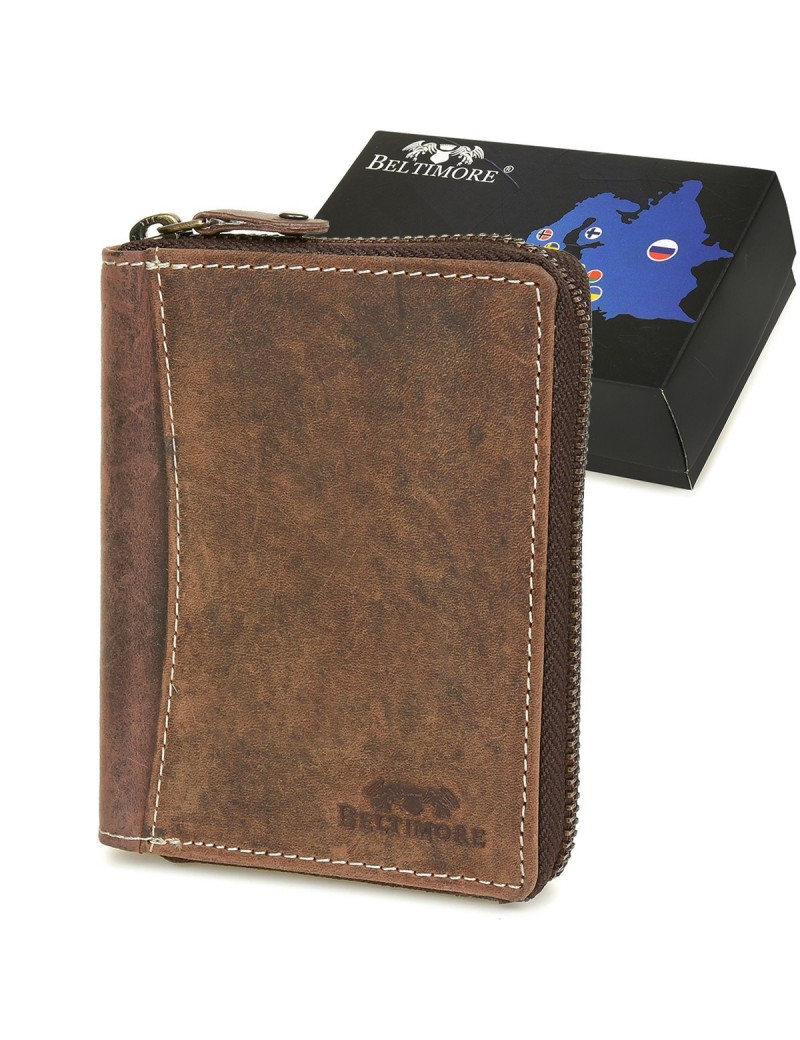 Brązowy duży portfel skórzany męski skóra nubuk Beltimore vintage G71