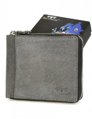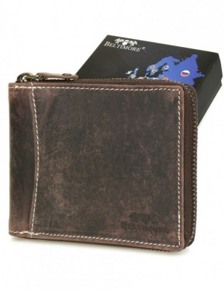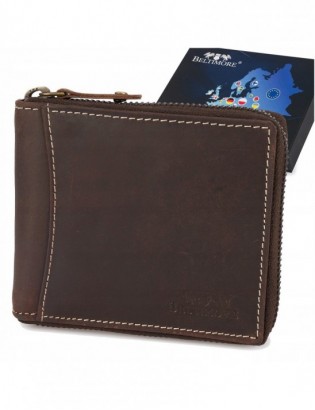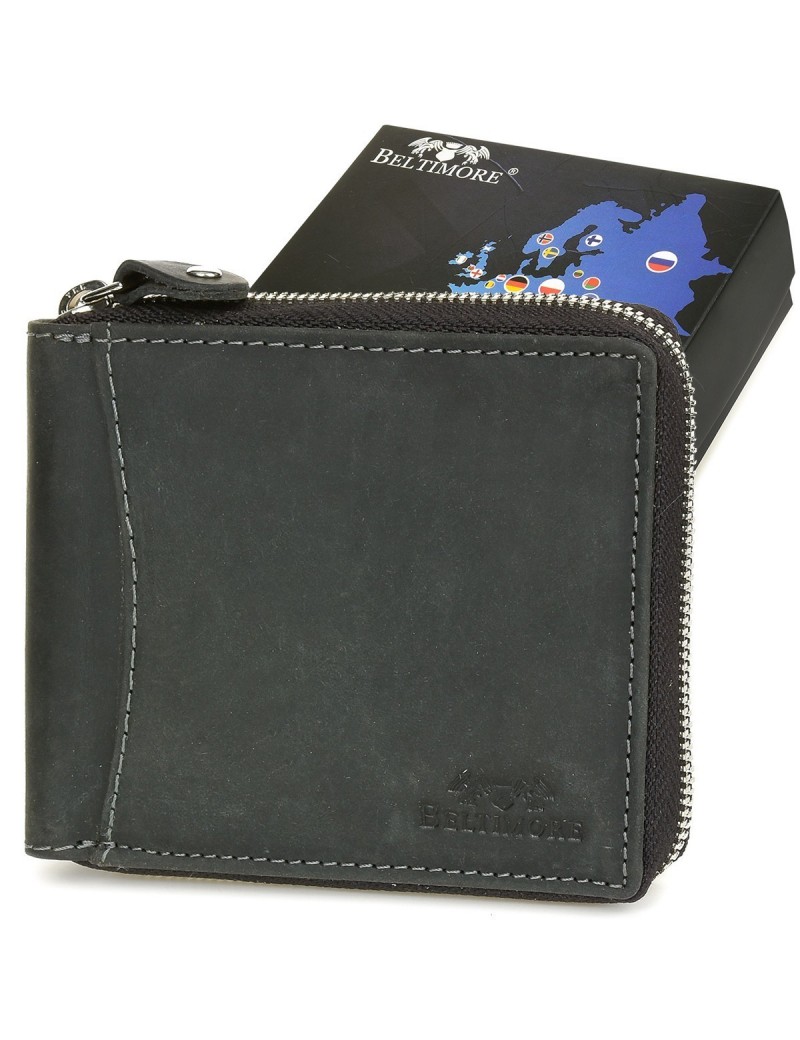 Portfel skórzany zasuwany duży poziomy RFiD nubuk czarny Beltimore H01