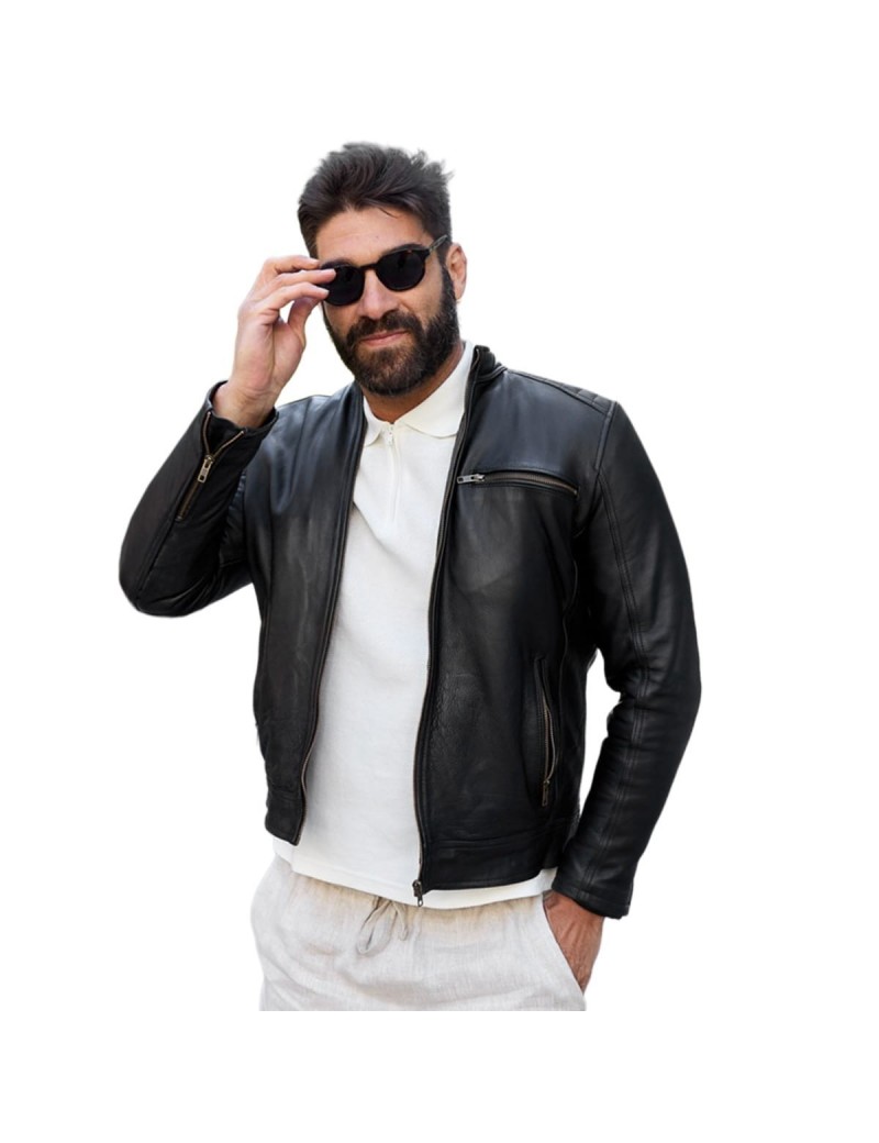 Kurtka skórzana męska bydlęca premium docieplana czarna Beltimore K01