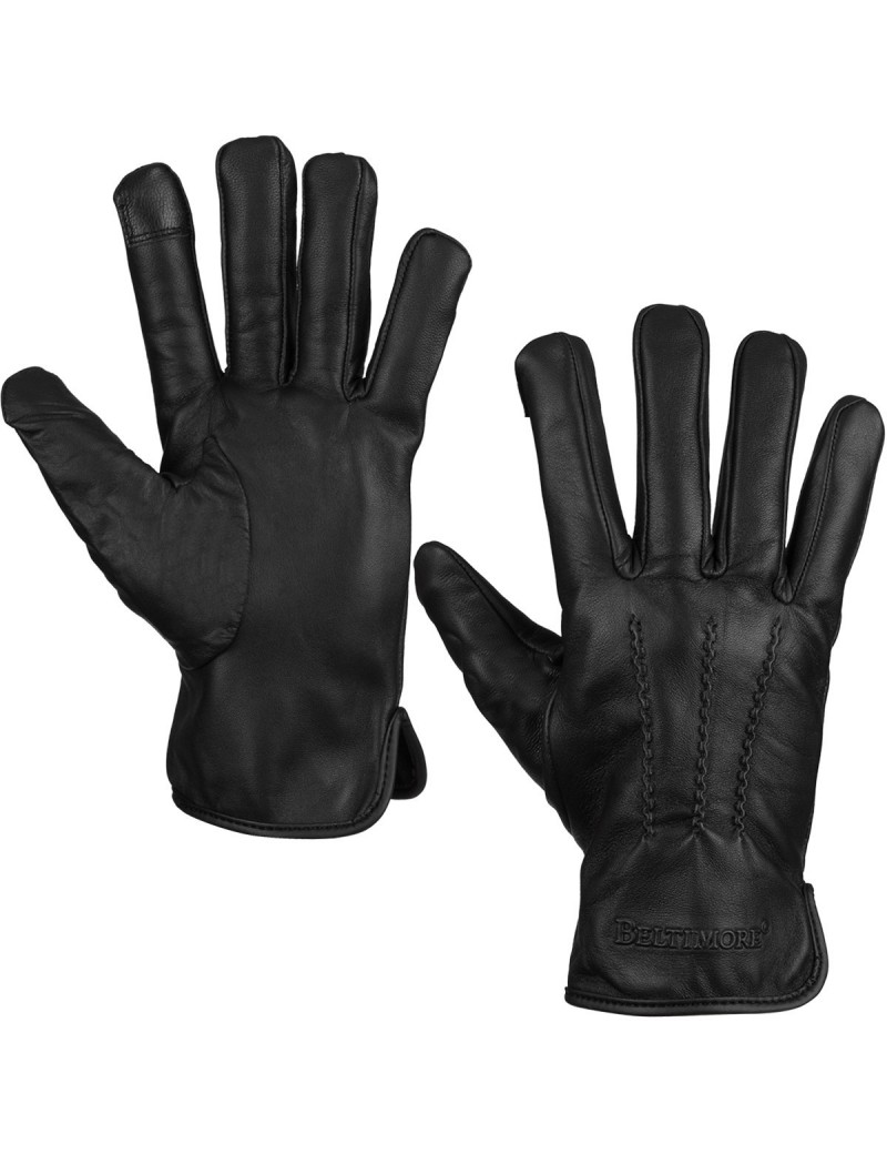Rękawiczki skórzane męskie polar miś touch finger DOTYK ekran czarne BELTIMORE K32
