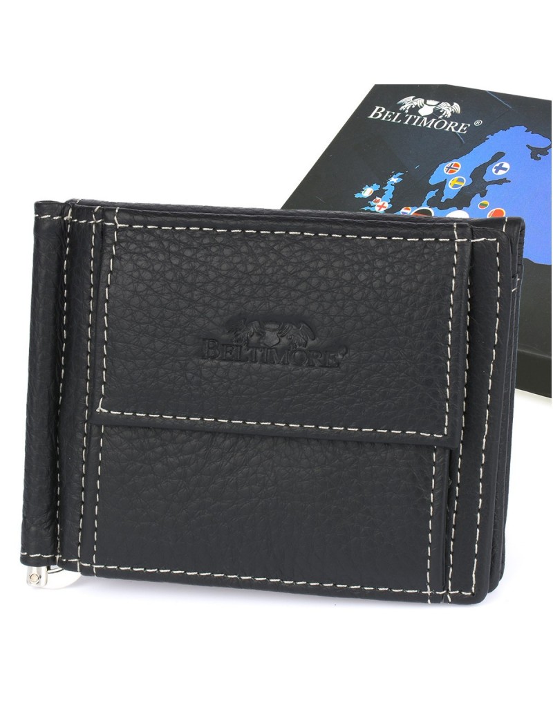 Portfel męski skórzany mały czarny z wsuwką na banknoty RFiD Beltimore L47