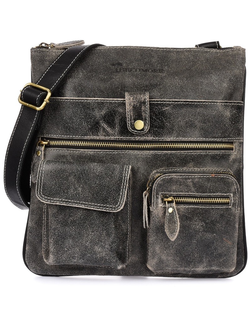 Czarna skórzana torba męska na ramię vintage raportówka Beltimore M05