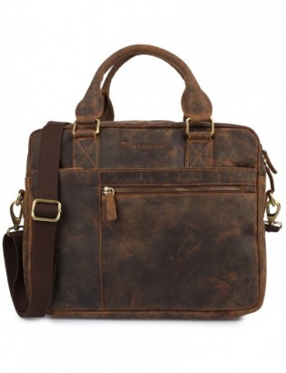 Duża solidna skórzana torba Beltimore na laptopa dokumenty czarna nubuk M88
