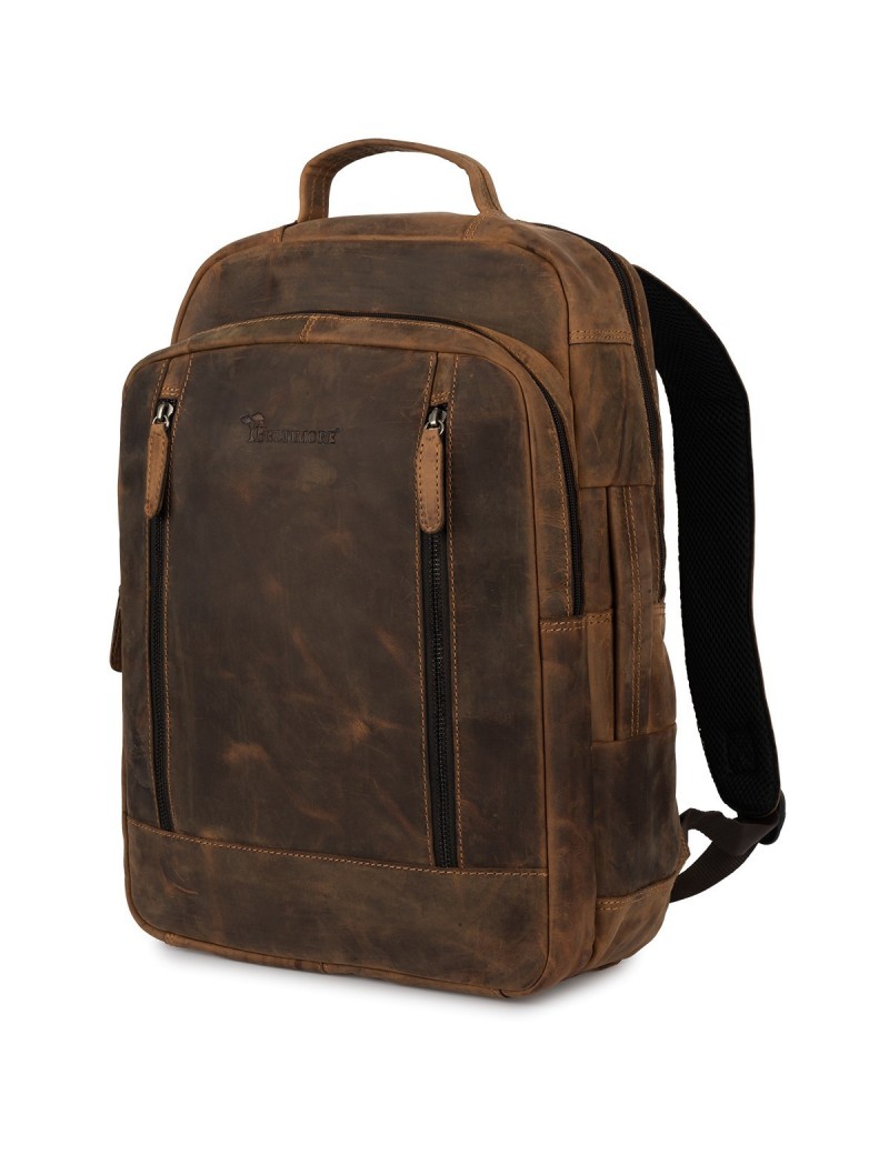 Plecak skórzany na laptopa 15,6 biznesowy duży A4 pojemny brązowy premium Beltimore N09