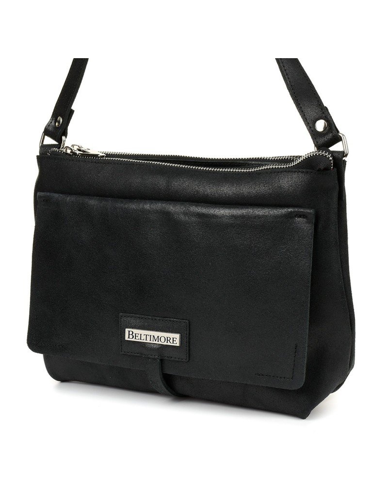 Beltimore Torebka Skórzana 2komorowa Klapa Pasek czarna N14