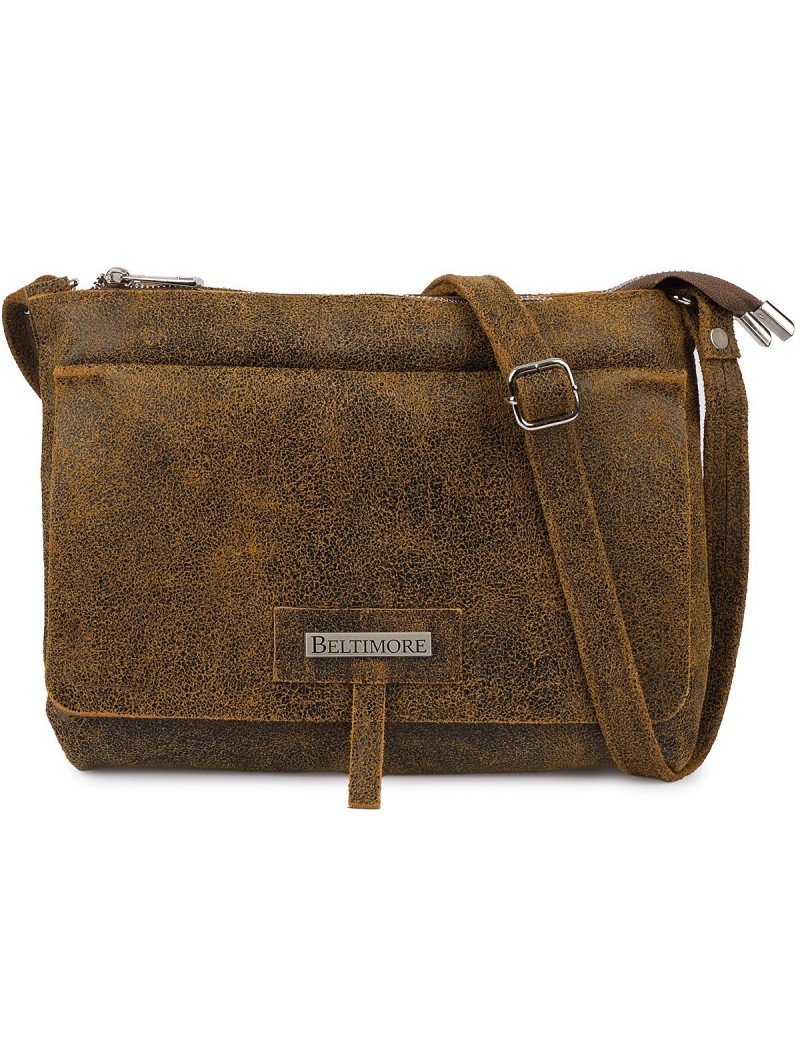 • Beltimore Torebka Skórzana 2komorowa Klapa Pasek brązowa N14 - zdjęcie 1