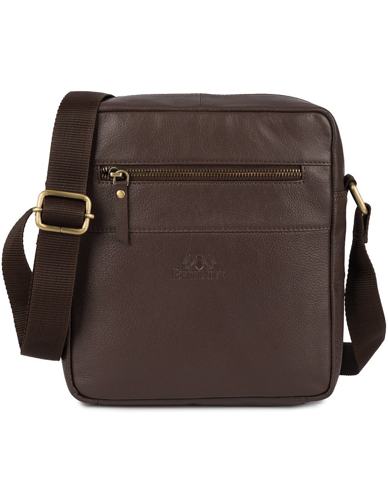 Męska torba skórzana na ramię listonoszka sportowa mocna brązowa Beltimore N17