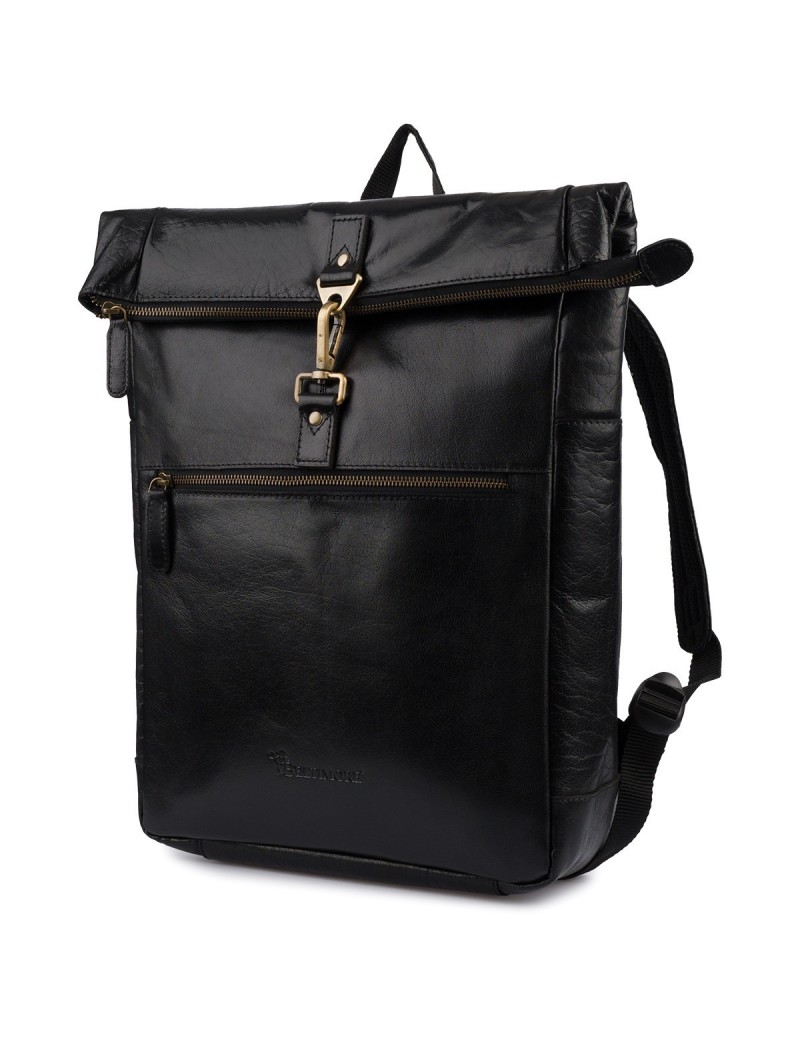 Plecak skórzany na laptopa 15,6 biznesowy duży A4 pojemny czarny premium Beltimore N19