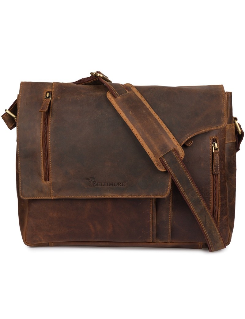 Torba męska skórzana na ramię laptopa 15" duża A4 brązowa nubuk biznesowa Beltimore N26