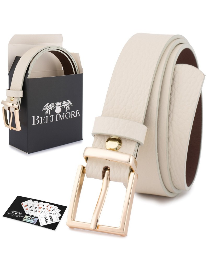 Skórzany pasek damski do spodni sukienki beżowa skóra nat 2,5 cm Beltimore O09