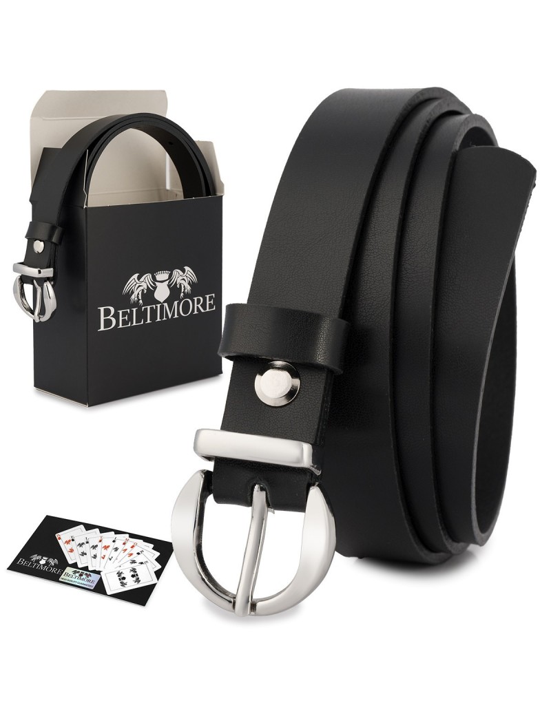 Skórzany pasek damski do spodni sukienki czarna skóra nat 1,8 cm Beltimore O20