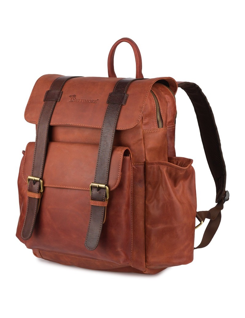 Plecak skórzany premium na laptopa 15,6 biznesowy duży A4 pojemny Beltimore brązowy P19