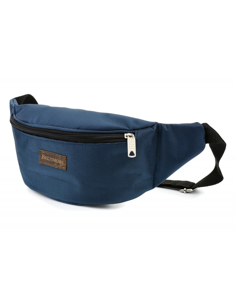 Granatowa nerka saszetka na biodro duża lakostka BELTIMORE P78