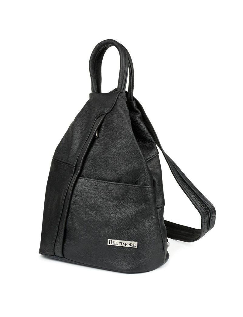 • Czarny Beltimore Plecak Damski Skórzany Trójkąt Pojemny Q60 - zdjęcie 1